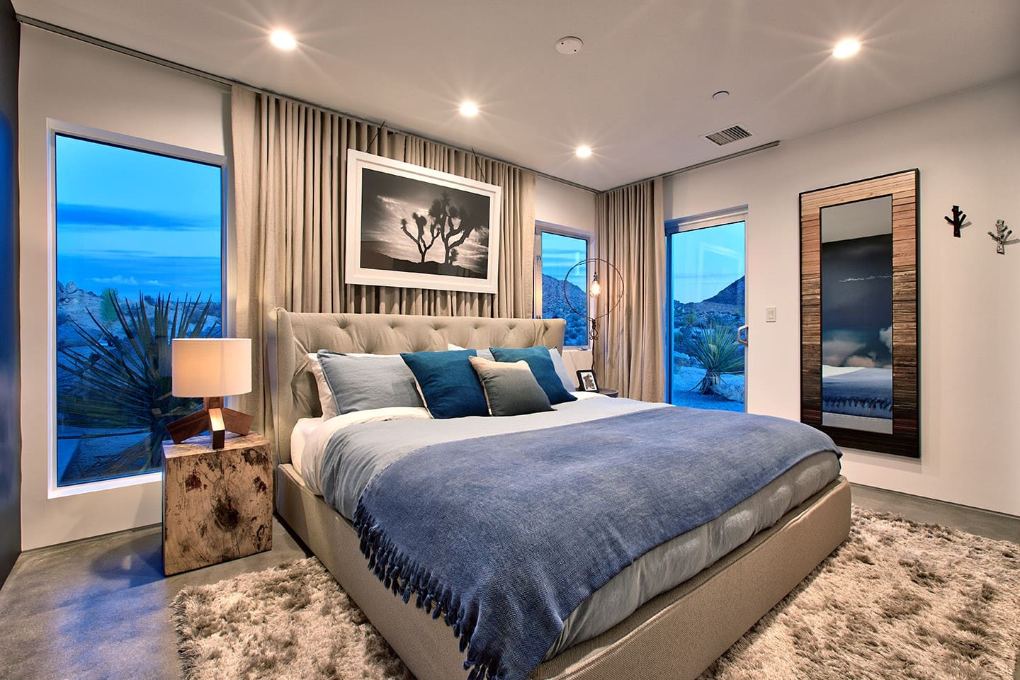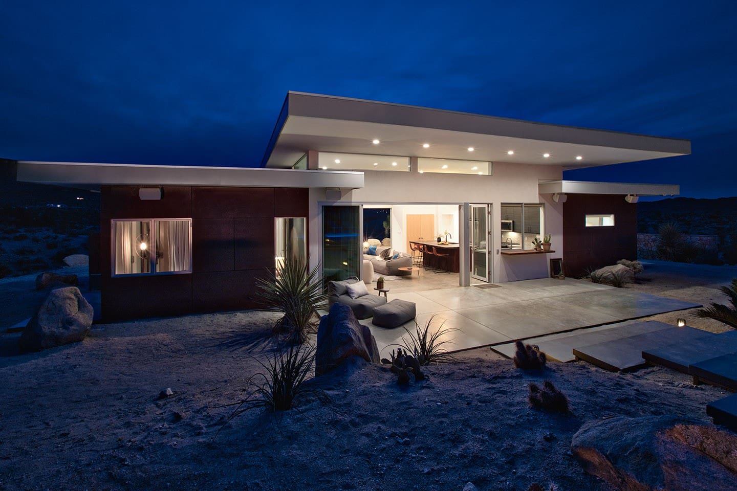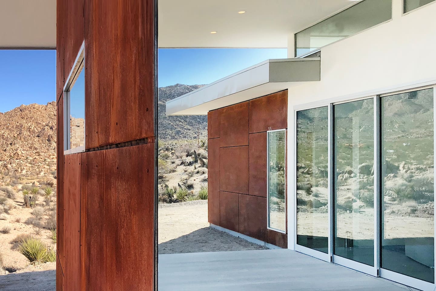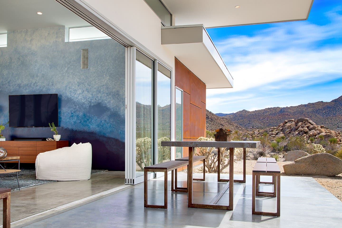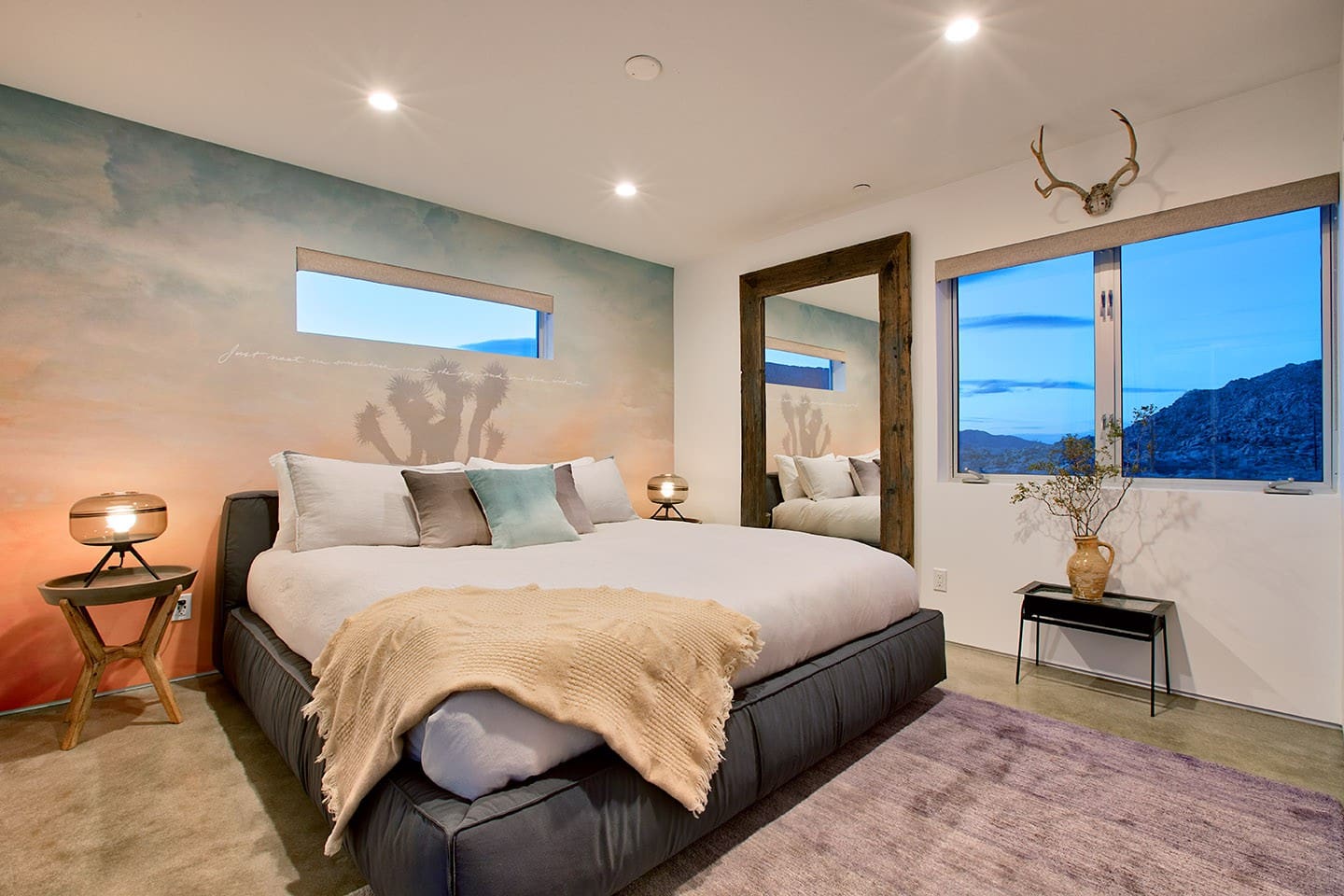 SkyHouse sets a new standard for the high desert. This signature architectural and inspirational hideaway is perched on 8 private acres in the heart of Joshua Tree. Enjoy spectacular views from the heated pool, outdoor shower, and indoor living room, with Joshua Tree National Park literally on your doorstep. SkyHouse is the collective expression of lifelong friends with a passion for the desert, for art and for living well. We hope our home provides you with the same sense of awe we experience each time we visit Joshua Tree. A perfect fusion of Wabi Sabi and modern design, SkyHouse features all the comforts of city living while retaining a deep connection to the surrounding desert and all its natural beauty. Soaring rooflines cap walls of sliding glass to ensure you’re always connected to the outdoors, even when nestled in the comfort of multi-zone climate controls. ☆☆ HIGHLIGHTS ☆☆ ✹ Stunning 1500-square-foot single-story villa on 8-acre private estate ✹ Winner of the Dwell Design Award (2019) ✹ Featured in TV, Film and Global Ad Campaigns ✹ 3 elegant bedrooms w/ custom murals + king beds ✹ Linens by Matouk and Frette ✹ 2 full bathrooms; luxury toiletries provided ✹ Full kitchen w/ modern appliances ✹ Oversized kitchen island w/ seating for 6 ✹ Open-concept living area w/ direct access to outdoor dining + pool ✹ 65” HDTV w/ access to popular streaming platforms ✹ High-speed wifi w/ speeds up to 43 Mbps + dedicated workspaces ✹ Wireless Sonos sound system throughout the home + outside spaces ✹ Washer + dryer ✹ 1800-square-foot outdoor decks w/ breathtaking desert views ✹ 10-foot outdoor dining table with unobstructed views of the desert ✹ Outdoor saltwater pool (heating available) ✹ Large hot tub ✹ 10’ gas fire pit ✹ Private garage w/ parking for 2 vehicles + twin L2 EV chargers ✹ Pet-friendly ✹ Free walk-on access to explore Desert View Conservation Area (DVCA) of Joshua Tree National park ✹ Exclusive location w/ easy drive to great restaurants + groceries ✹ Commercial production available on request Eager to Read More? Here Are A Few Kind Words From Our Previous Guests: “Gorgeous, peaceful, comfortable house …. We had an amazing time! We mostly loved the proximity to the park , and spending time outside at night , swimming , enjoying the night sky …. Will be back for sure . Thank you for sharing your piece of heaven.” –Raya “We had a fantastic stay at Skyhouse. This home is so comfortable and the scenery is absolutely amazing. We had a great time walking into the national park as well as walking through the garden and lighted path. This is a home that is so well manicured and taken care of. We had such a great time that we didn’t want to leave. I highly recommend skyhouse for your next trip. It will not disappoint! Thank you for a great stay.” –Devon “Wow! We were looking for a beautiful secluded, private house and this place did not disappoint! The scenery was outstanding! If you're an early bird, the sunrises are simply surreal. The hiking from the backyard was fabulous, straight in to the national park. We mainly stayed at the house, only venturing out a few times, because we didn't want to leave our serene oasis in the desert. We cooked most meals at the house. I was very impressed that all the extras were provided, baggies, food wrap, chip clips, spices, coffee, olive oil, honey, sugar, teas, etc. They even provided clothes washing detergent, plenty of paper towels and trash bags. The kitchen was well stocked, all we had to do was get the food items. I have stayed at some Airbnb's that only provided a few things, and you had to go buy a whole container of something you only needed two out of the whole box. The town is not the attraction here, the house and setting is! If you need to recharge yourself this is the place!” —Cara ☆☆ AN INSPIRED DESIGN ☆☆ Nestled on 8 secluded acres overlooking Joshua Tree National Park, the award-winning SkyHouse is an architectural delight. Featured in Architectural Digest, this unique home was inspired by the City Library Bruges and Doug Aitken’s “Mirage” art installation and has been featured in movies such as Andy Samberg’s “Palm Springs”, national ad campaigns, fashion shoots, and music videos. The perfect fusion of Wabi Sabi and modern design, SkyHouse epitomizes comfort, elegance, and luxury – a truly magical location for a special getaway for the discerning desert enthusiast. Guest access: ✹ GENERAL: Guests can enjoy private access to the entire 8-acre estate. ✹ PARKING: Free parking is available for two vehicles in the covered garage. Additional vehicles may be parked in the uncovered driveway. We also have 2 free EV chargers for your convenience. ✹ WORK FROM HOME: There is free, high-speed wifi available throughout the home, plus a designated workspace in the primary bedroom and a comfortable laptop-friendly space in the kitchen. ✹ PETS: Well-behaved pets are welcome. ✹ FILM AND COMMERCIAL PRODUCTION: available on request. Please inquire about rates and availability. Other Things to Note: ✹ Personalized host greeting to help you access the property and get settled. ✹ Heating for the hot tub and fire pit are included in your booking fee. ✹ Pool heating is available during the cooler season. Please advise us in advance of your arrival if you’d like to make use of it. A supplemental fee of $200 per day is charged, due to high fuel costs in this area. ✹ SkyHouse benefits from a unique location, which grants you walk-on access to miles of stunning hiking trails and mountains in the Desert View Conservation Area of Joshua Tree National Park, completely free of charge. ✹ Guests will be required to sign and agree to our house rules, verify their identity, pay our refundable security deposit, and schedule a phone call with our manager. All steps must be completed in full before check-in. ✹ The High Desert occasionally has 