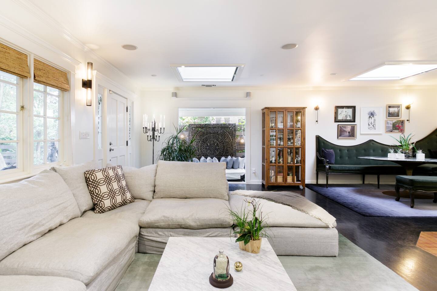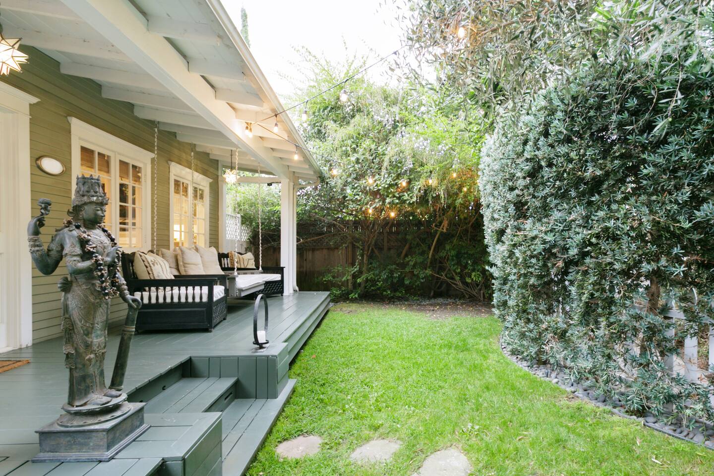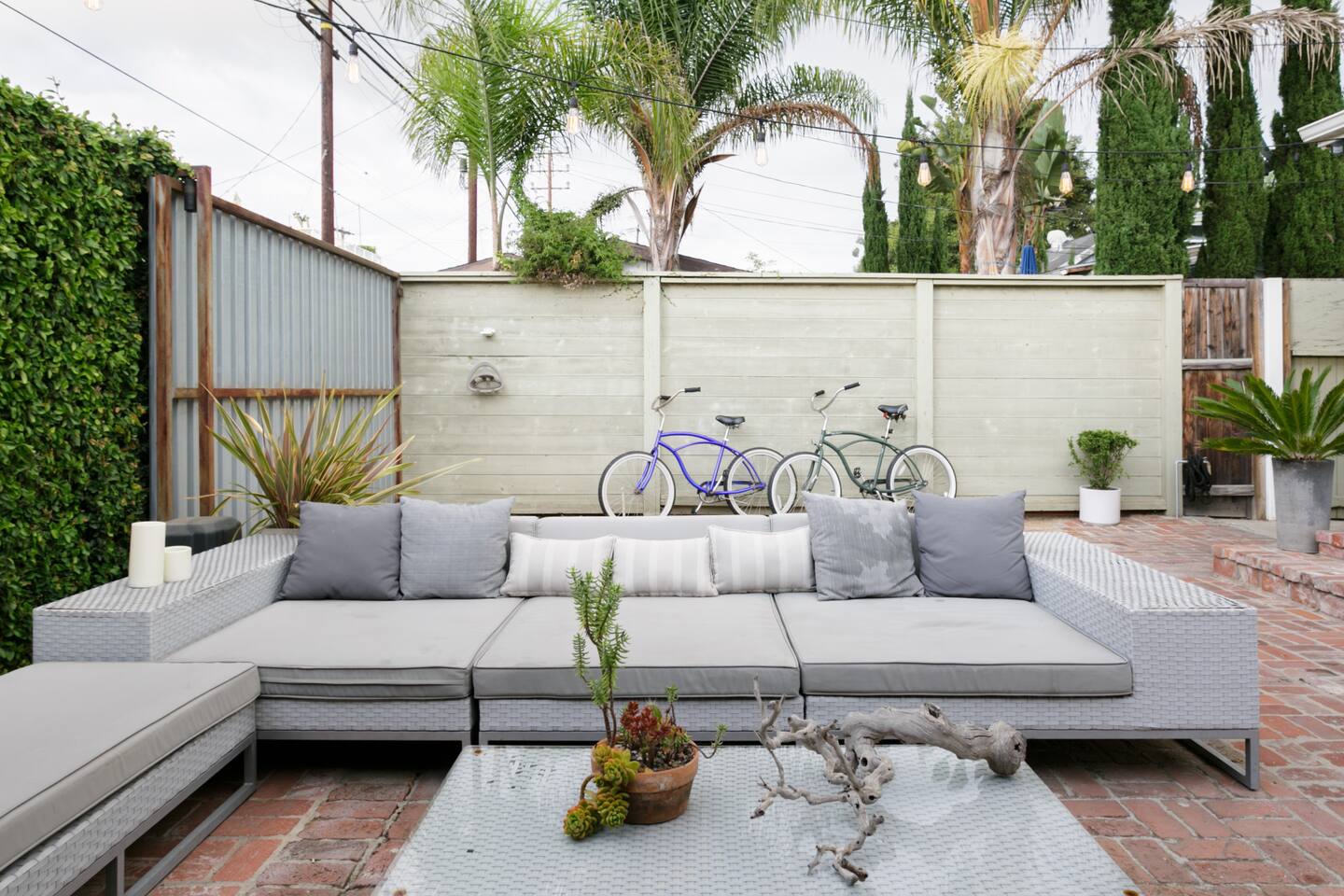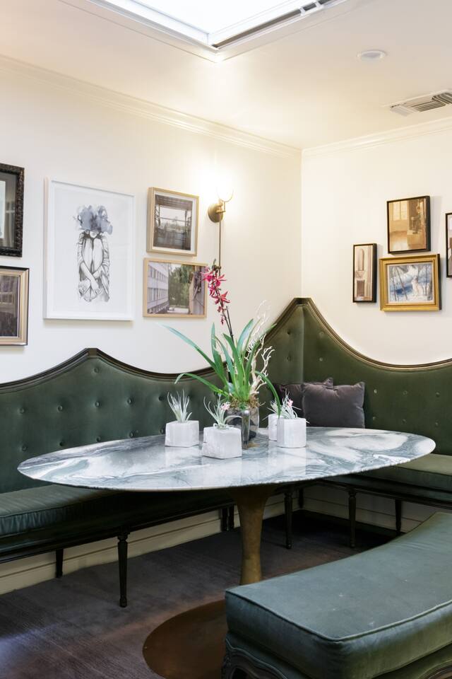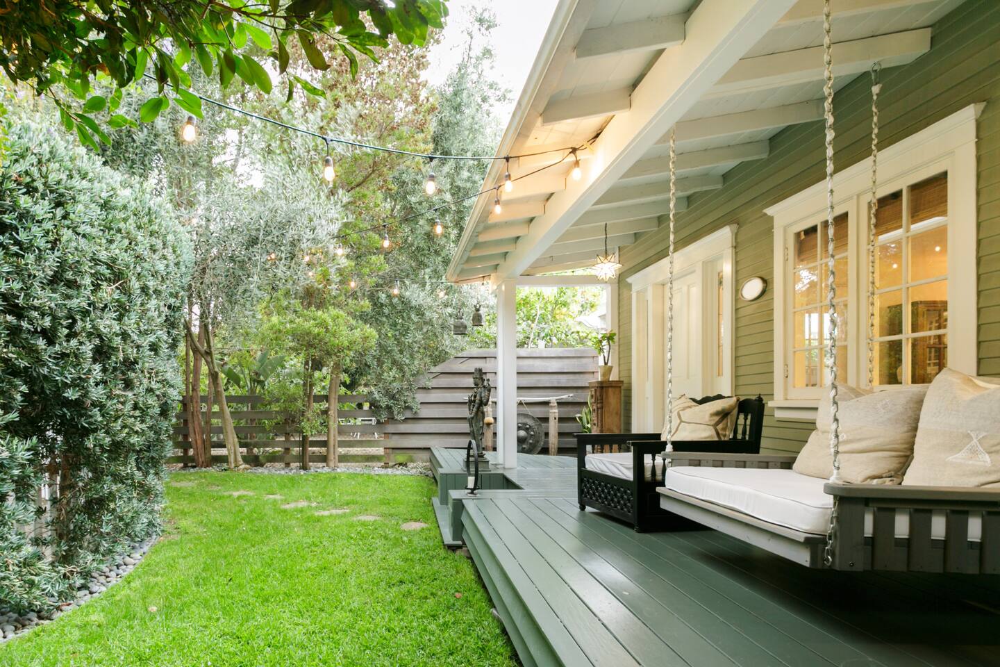 This quiet, designer bright & airy romantic bungalow is on the historic Venice Walk Streets. Fully modern open floor plan with chef's kitchen, restaurant-grade espresso machine, 50" flat screen TV, Sonos sound system throughout the property, wi-fi and more. Beautiful grassy front yard on the peaceful tree-lined walk street with hanging porch swing, breakfast table and more. Private rear patio with expansive outdoor seating (perfect for lazy sunny days), 6 person hot tub and extra parking. The space Recently completed six-figure redesign by Venice designer Vanessa Schreiber matches beautiful details with comfort throughout. The Master bedroom has an en-suite bathroom featuring vintage clawfoot tub. The second bedroom is a Moroccan inspired hideaway in a private, romantic 'Cabana' off the rear patio. Not just a rental: this is my home, and features fine art and rare collectibles I’ve acquired from all over the world. I hope you’ll feel the same love and inspiration the Foxden gives me every day. Guest access: As a guest, you have access to the entire property. There is the main house, the cabana, the hot tub, and three outdoor patios that are each uniquely furnished. My home is your home! Other things to note: Please note that Foxden is a quiet, peaceful retreat. Out of respect for our neighbors, no more than 4 people may be on property at any time. Music should be kept at low, respectful levels. Please avoid loud conversation outdoors after 10pm. There are gongs and musical chimes hanging outdoors that I have collected in my journeys. Again, out of respect for our neighbors, please do not sound these at night. Upon booking, you will receive a link with a request to sign and agree to our house rules, verify your identity, pay our refundable security deposit, and schedule a phone call with our manager. Please note that these steps are required for all guests. All steps must be complete in full prior to check-in.