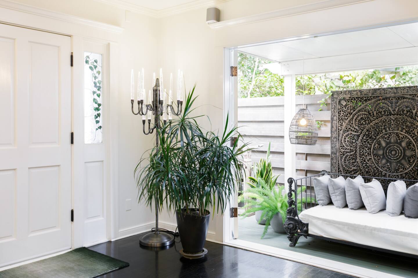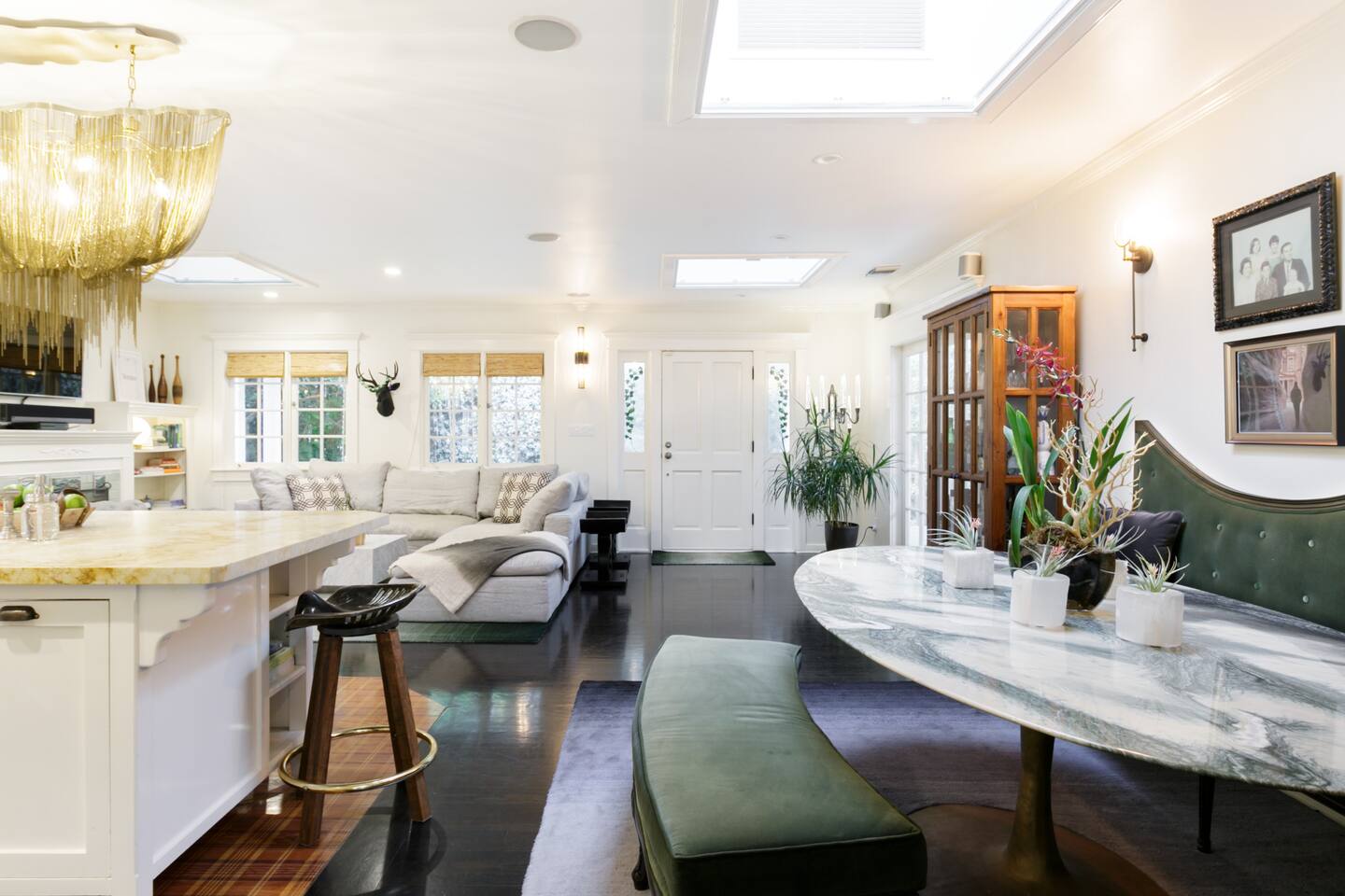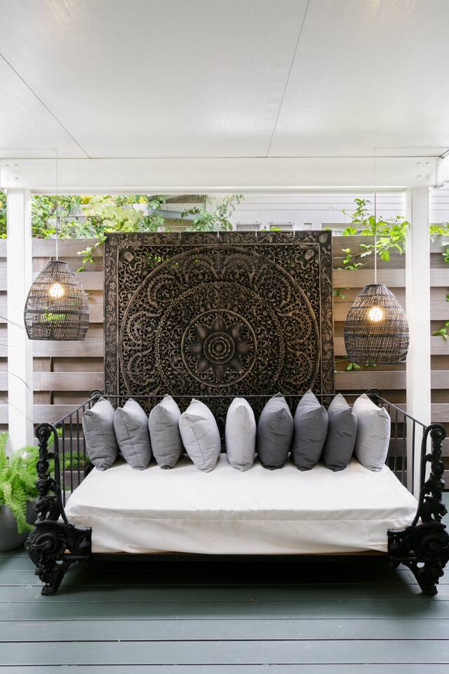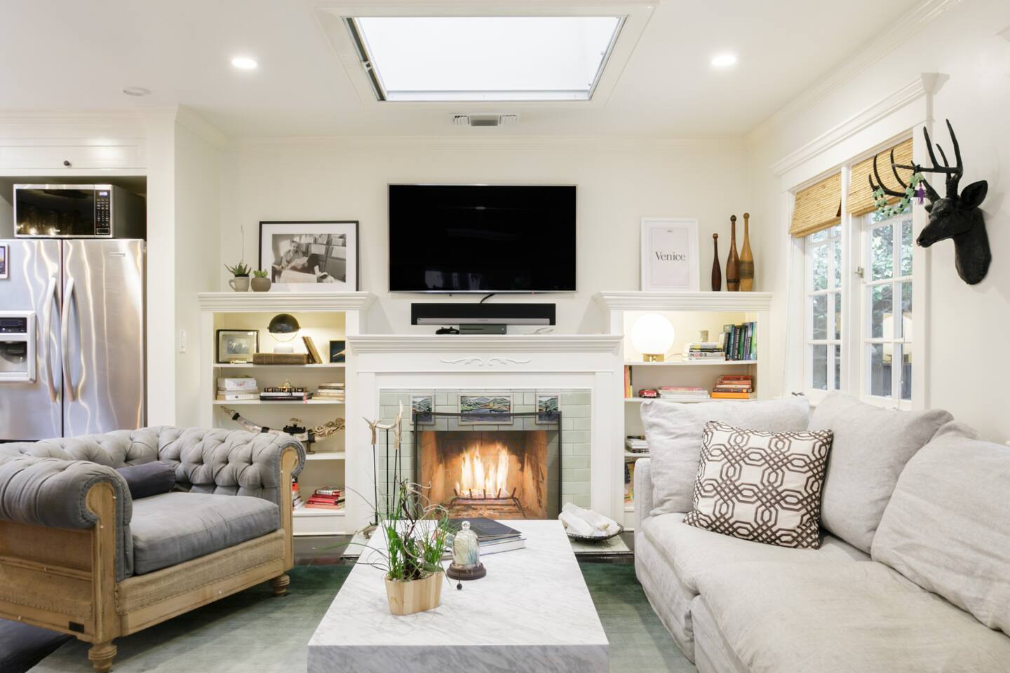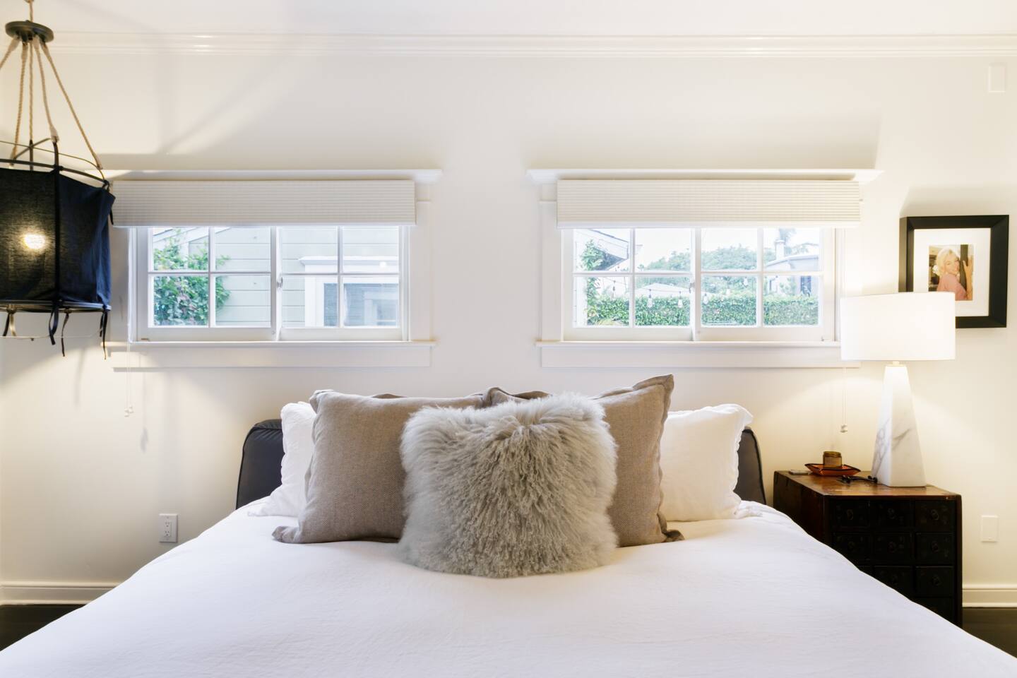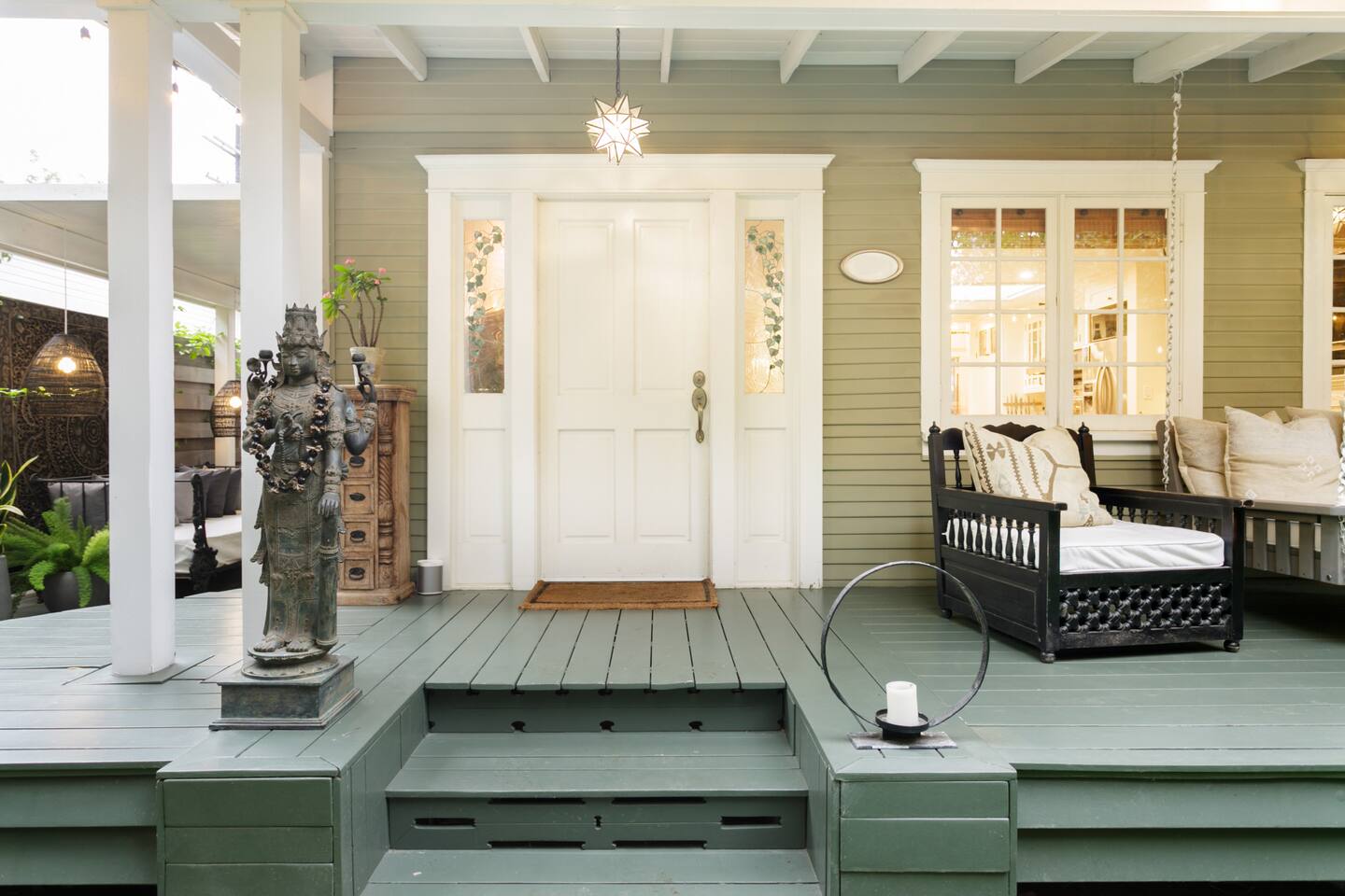 This quiet, designer bright & airy romantic bungalow is on the historic Venice Walk Streets. Fully modern open floor plan with chef's kitchen, restaurant-grade espresso machine, 50" flat screen TV, Sonos sound system throughout the property, wi-fi and more. Beautiful grassy front yard on the peaceful tree-lined walk street with hanging porch swing, breakfast table and more. Private rear patio with expansive outdoor seating (perfect for lazy sunny days), 6 person hot tub and extra parking. The space Recently completed six-figure redesign by Venice designer Vanessa Schreiber matches beautiful details with comfort throughout. The Master bedroom has an en-suite bathroom featuring vintage clawfoot tub. The second bedroom is a Moroccan inspired hideaway in a private, romantic 'Cabana' off the rear patio. Not just a rental: this is my home, and features fine art and rare collectibles I’ve acquired from all over the world. I hope you’ll feel the same love and inspiration the Foxden gives me every day. Guest access: As a guest, you have access to the entire property. There is the main house, the cabana, the hot tub, and three outdoor patios that are each uniquely furnished. My home is your home! Other things to note: Please note that Foxden is a quiet, peaceful retreat. Out of respect for our neighbors, no more than 4 people may be on property at any time. Music should be kept at low, respectful levels. Please avoid loud conversation outdoors after 10pm. There are gongs and musical chimes hanging outdoors that I have collected in my journeys. Again, out of respect for our neighbors, please do not sound these at night. Upon booking, you will receive a link with a request to sign and agree to our house rules, verify your identity, pay our refundable security deposit, and schedule a phone call with our manager. Please note that these steps are required for all guests. All steps must be complete in full prior to check-in.