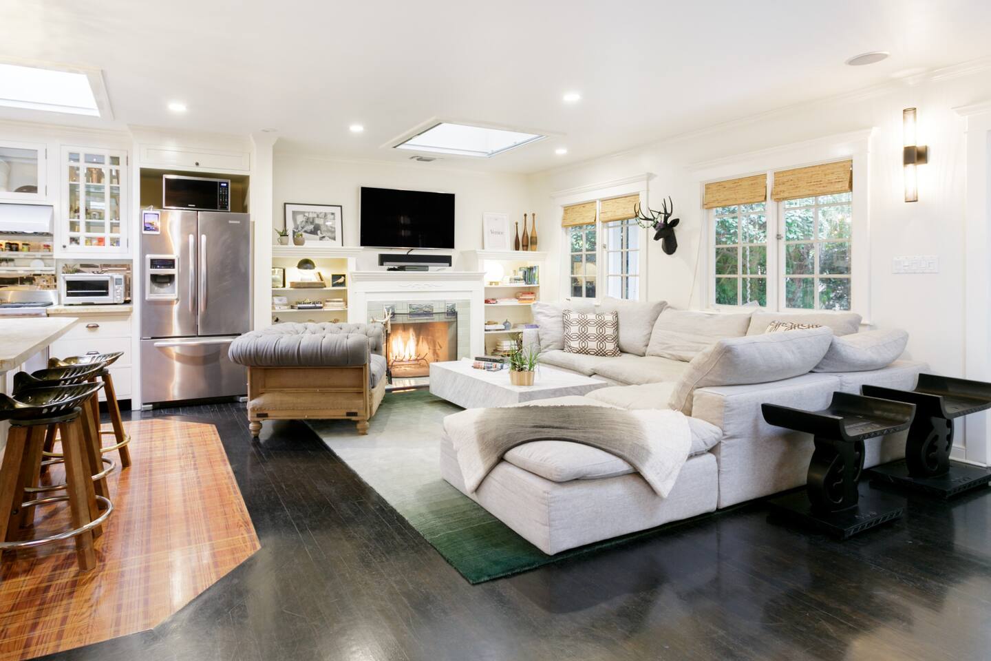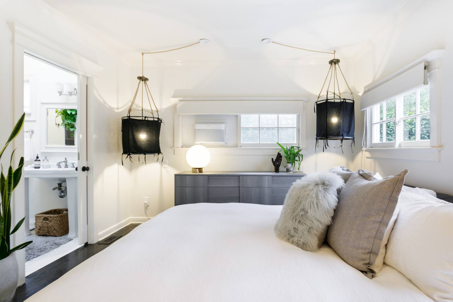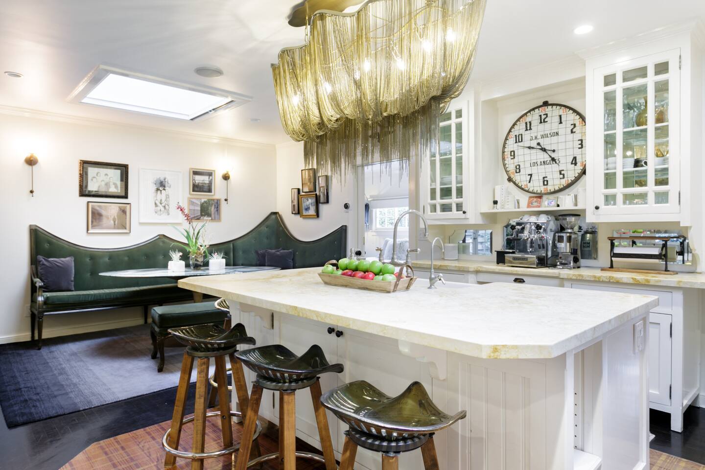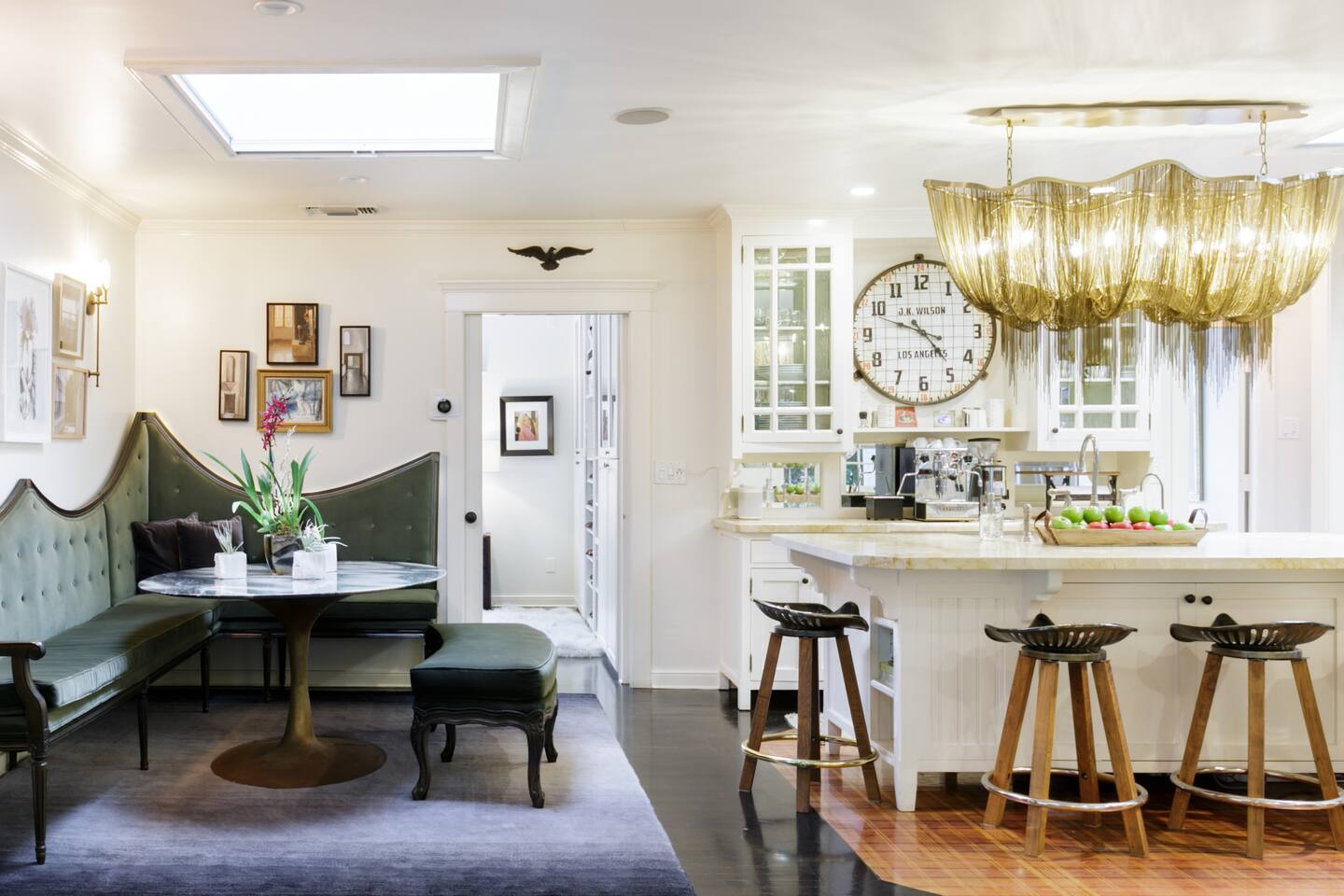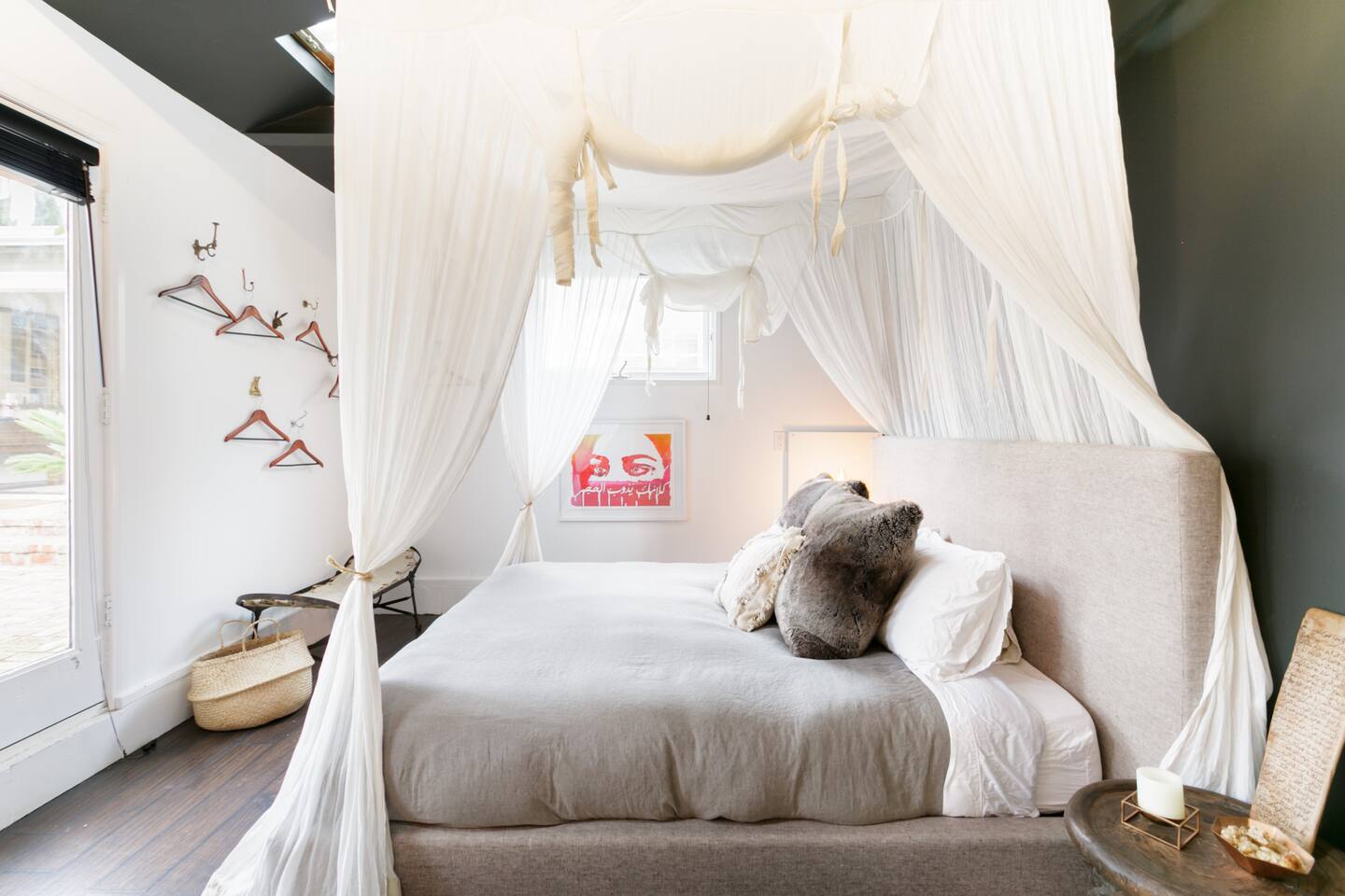 This quiet, designer bright & airy romantic bungalow is on the historic Venice Walk Streets. Fully modern open floor plan with chef's kitchen, restaurant-grade espresso machine, 50" flat screen TV, Sonos sound system throughout the property, wi-fi and more. Beautiful grassy front yard on the peaceful tree-lined walk street with hanging porch swing, breakfast table and more. Private rear patio with expansive outdoor seating (perfect for lazy sunny days), 6 person hot tub and extra parking. The space Recently completed six-figure redesign by Venice designer Vanessa Schreiber matches beautiful details with comfort throughout. The Master bedroom has an en-suite bathroom featuring vintage clawfoot tub. The second bedroom is a Moroccan inspired hideaway in a private, romantic 'Cabana' off the rear patio. Not just a rental: this is my home, and features fine art and rare collectibles I’ve acquired from all over the world. I hope you’ll feel the same love and inspiration the Foxden gives me every day. Guest access: As a guest, you have access to the entire property. There is the main house, the cabana, the hot tub, and three outdoor patios that are each uniquely furnished. My home is your home! Other things to note: Please note that Foxden is a quiet, peaceful retreat. Out of respect for our neighbors, no more than 4 people may be on property at any time. Music should be kept at low, respectful levels. Please avoid loud conversation outdoors after 10pm. There are gongs and musical chimes hanging outdoors that I have collected in my journeys. Again, out of respect for our neighbors, please do not sound these at night. Upon booking, you will receive a link with a request to sign and agree to our house rules, verify your identity, pay our refundable security deposit, and schedule a phone call with our manager. Please note that these steps are required for all guests. All steps must be complete in full prior to check-in.