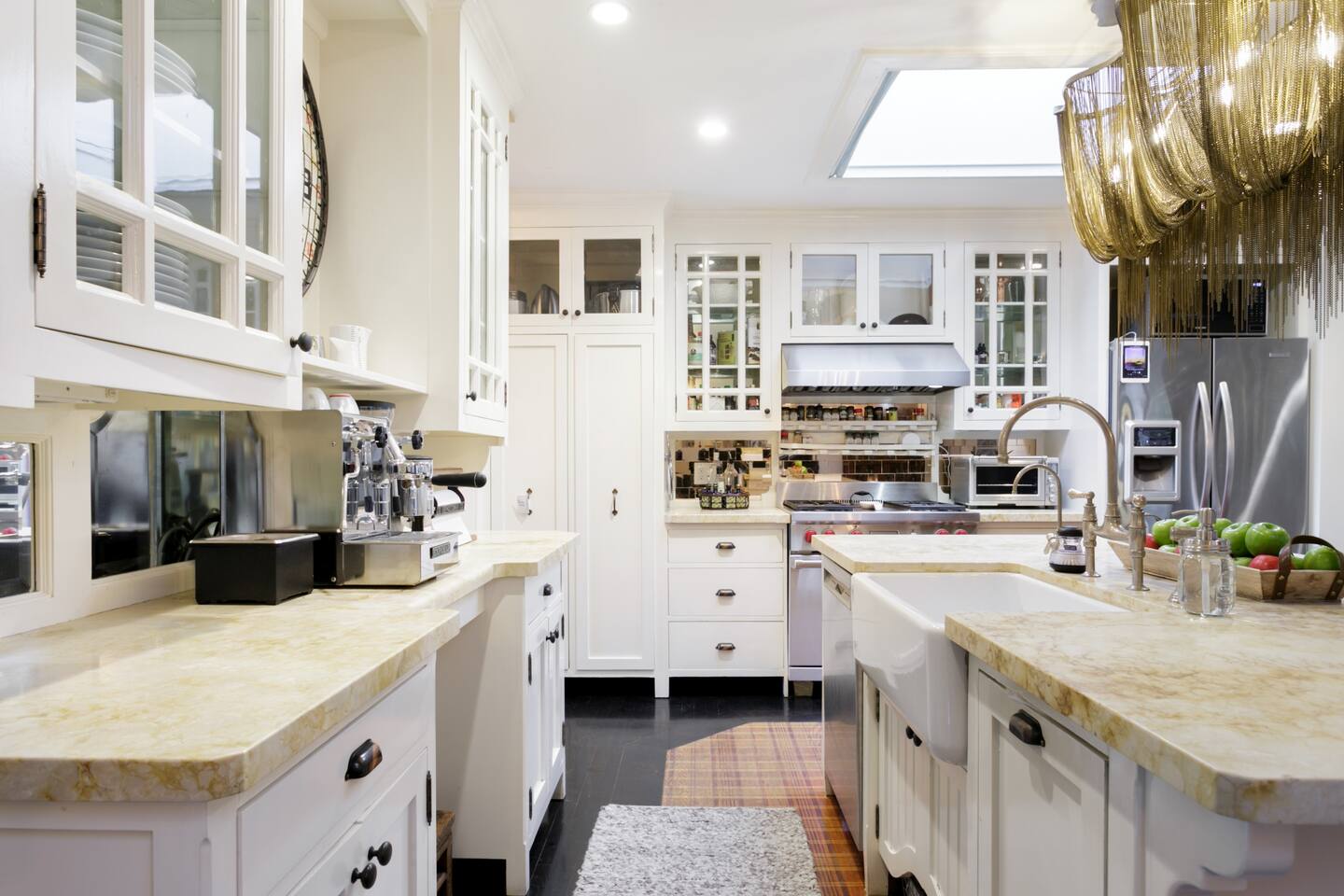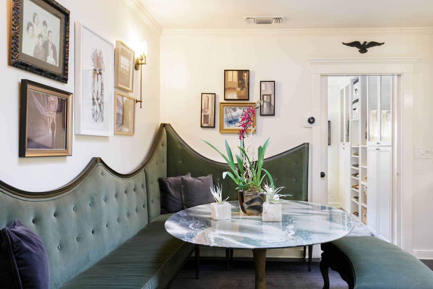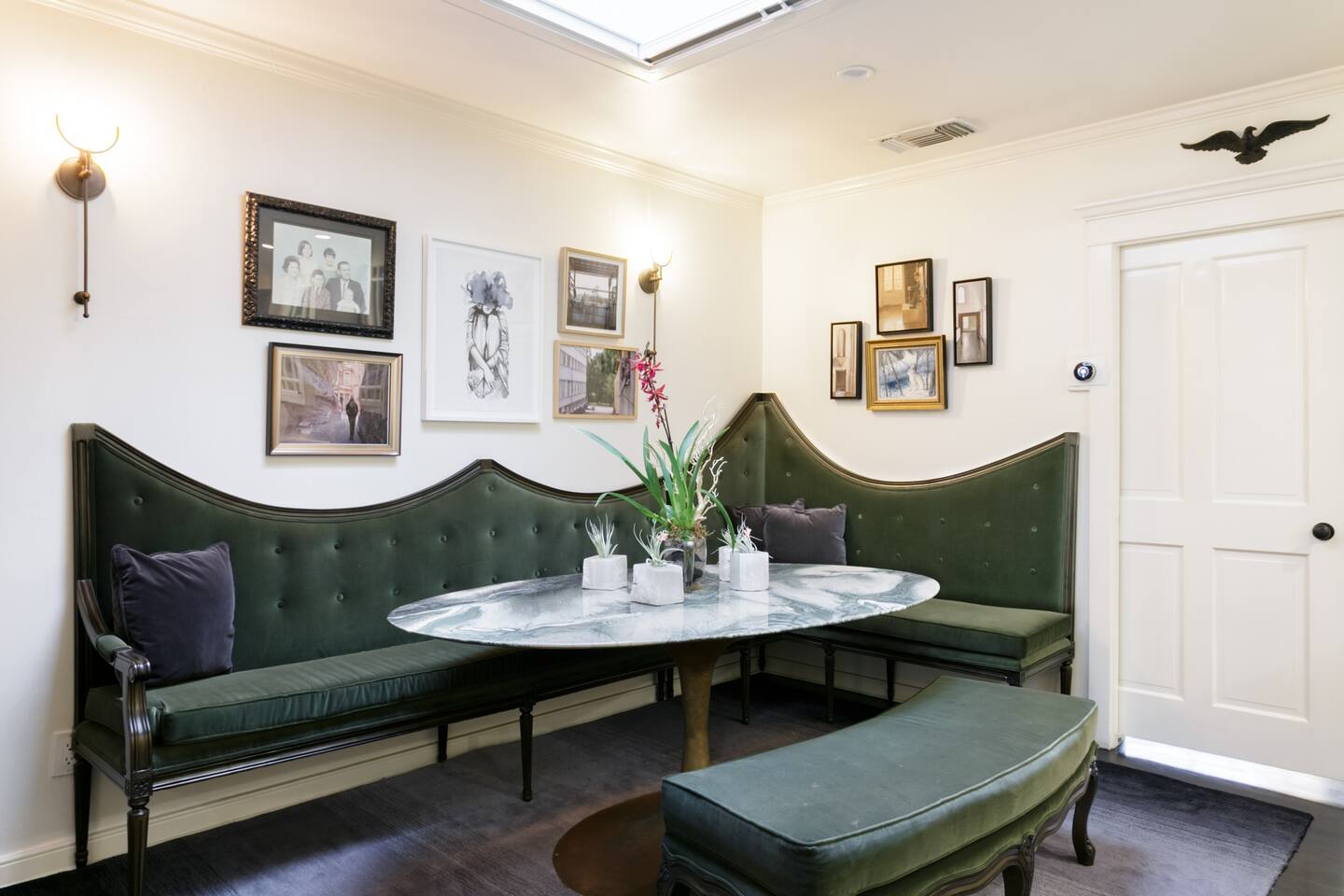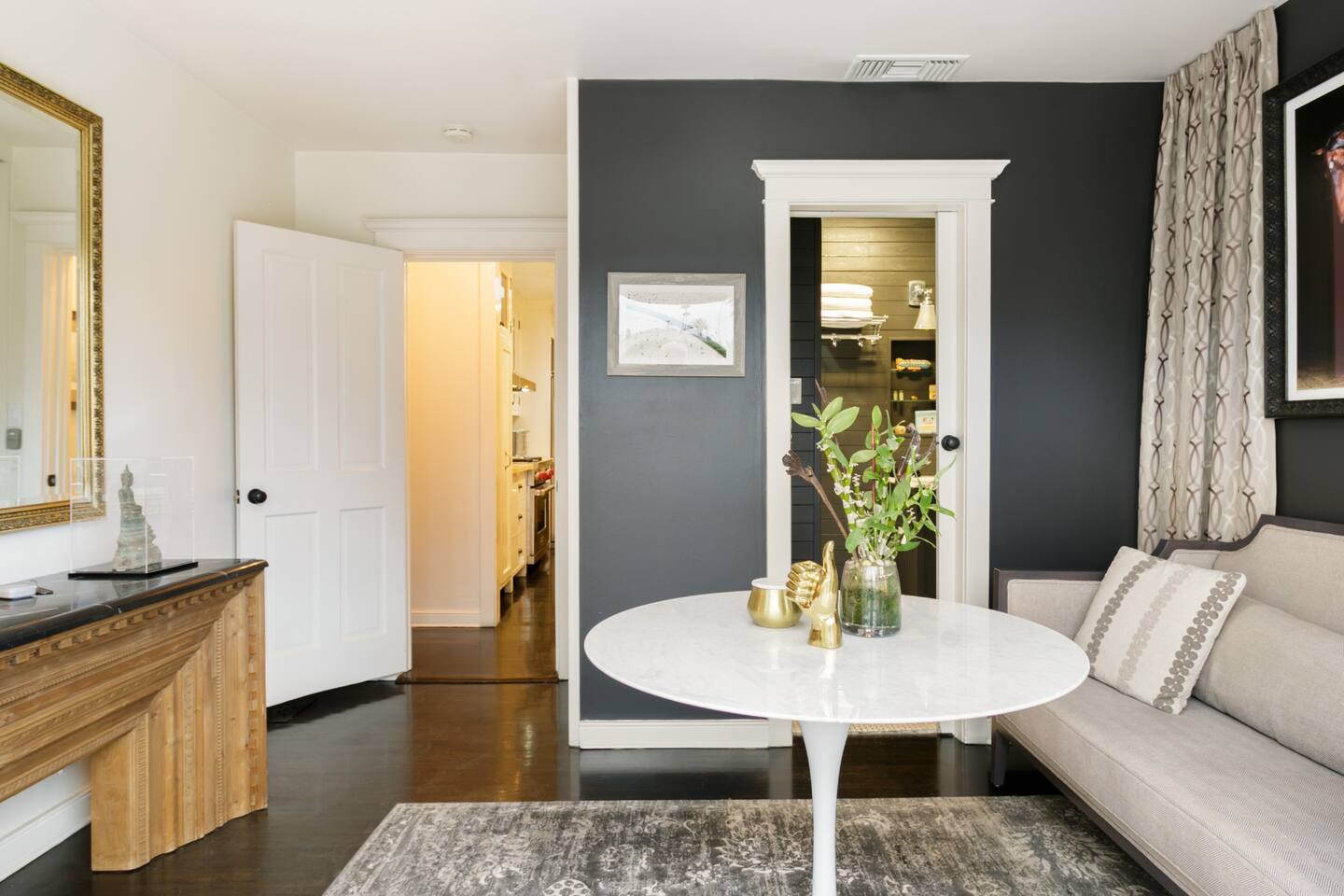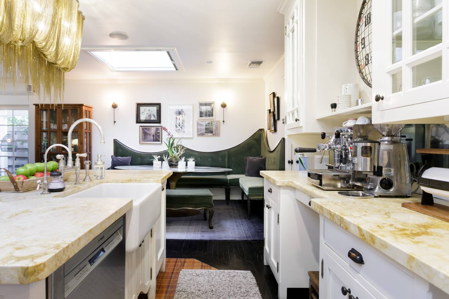 This quiet, designer bright & airy romantic bungalow is on the historic Venice Walk Streets. Fully modern open floor plan with chef's kitchen, restaurant-grade espresso machine, 50" flat screen TV, Sonos sound system throughout the property, wi-fi and more. Beautiful grassy front yard on the peaceful tree-lined walk street with hanging porch swing, breakfast table and more. Private rear patio with expansive outdoor seating (perfect for lazy sunny days), 6 person hot tub and extra parking. The space Recently completed six-figure redesign by Venice designer Vanessa Schreiber matches beautiful details with comfort throughout. The Master bedroom has an en-suite bathroom featuring vintage clawfoot tub. The second bedroom is a Moroccan inspired hideaway in a private, romantic 'Cabana' off the rear patio. Not just a rental: this is my home, and features fine art and rare collectibles I’ve acquired from all over the world. I hope you’ll feel the same love and inspiration the Foxden gives me every day. Guest access: As a guest, you have access to the entire property. There is the main house, the cabana, the hot tub, and three outdoor patios that are each uniquely furnished. My home is your home! Other things to note: Please note that Foxden is a quiet, peaceful retreat. Out of respect for our neighbors, no more than 4 people may be on property at any time. Music should be kept at low, respectful levels. Please avoid loud conversation outdoors after 10pm. There are gongs and musical chimes hanging outdoors that I have collected in my journeys. Again, out of respect for our neighbors, please do not sound these at night. Upon booking, you will receive a link with a request to sign and agree to our house rules, verify your identity, pay our refundable security deposit, and schedule a phone call with our manager. Please note that these steps are required for all guests. All steps must be complete in full prior to check-in.